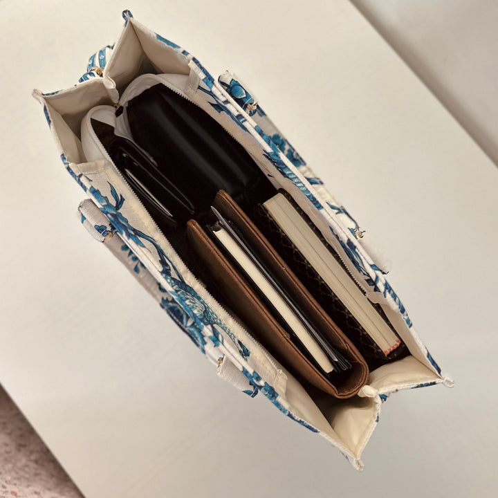 Introducing the FLORAL MUSE Tote Bag. Elevate your everyday style with the FLORAL MUSE Tote Bag, a chic and versatile accessory designed for the modern woman. Crafted with premium materials and thoughtful design, this tote combines fashion and functionality.